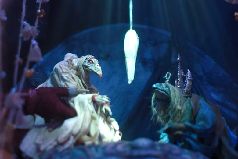 Car Age of Resistance, comme Dark Crystal, reste une oeuvre nous présentant un monde en proie à un déséquilibre fondamental. La voix de Sigourney Weaver nous l’explique très bien dès le début du premier épisode : « Pendant des milliers d’années, Thra vivait en harmonie. Mais de nouvelles créatures arrivèrent, étrangère à Thra : les skèksès. Ils racontèrent à Aughra des légendes captivantes sur l’univers, et lui bâtirent un planétarium, pour qu’elle découvre d’elle-même les mystères du cosmos. Aughra leva alors les yeux vers les étoiles, et confia le Cristal de Vérité aux Skèksès. Il y a près d’un millier de trines, les Skèksès se proclamèrent les Seigneurs de Thra. Encore une fois, les Skèksès se réunissent en secret à l’aube d’un nouveau jour, pour puiser la vie du Cristal qu’ils ont juré de protéger, afin qu’ils puissent se régénérer. Défier la mort, en capturant l’énergie de leur trésor. Leur récompense. Leur prisonnier. Le Dark Crystal ».