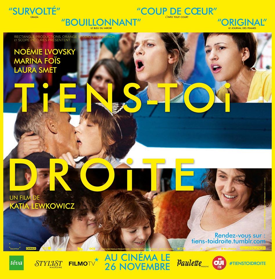 Tiens-toi droite prend la relève, sur une partition moins comique que les deux autres long métrages précités – même si le film ne manque pas d’humour. En faisant le choix de l’œuvre chorale, entrecroisant les destinées de trois personnages féminins (en fait, quatre si l’on compte la fillette qui finit par tenir un rôle central dans l’intrigue), Katia Lewkowicz passe au scanner la place des femmes dans la société française. Bouillonnant, le film explore de multiples pistes – peut-être trop et c’est là une de ses limites – qui appellent à la réflexion. Les passages les plus marquants sont ceux où les intentions ne sont pas soulignées, où le constat apparaît de lui-même, où les images disent tout. Par exemple, cette répartition des rôles au supermarché, a priori anodine : une mère de famille, les bras chargés de courses, observe déconfite son mari ravi, les bras occupés à soutenir leurs filles qui lui réclament des bisous avec empressement.